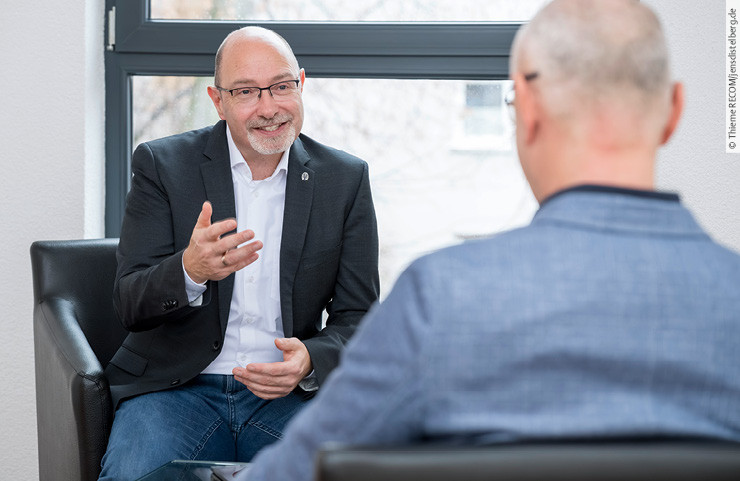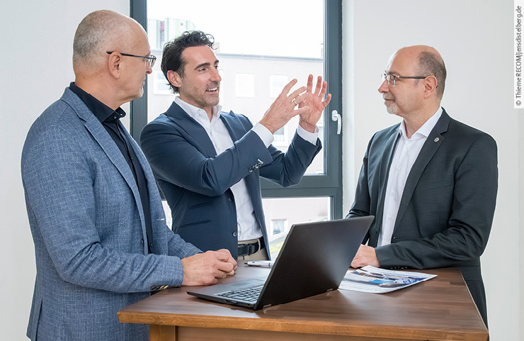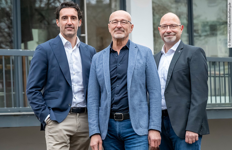 Thieme RECOM Geschäftsführer Gregor Müller (li.) mit Andreas Gohl (Mitte), Senior Director Support, Mitglied der Geschäftsleitung und Prokurist, sowie Simon Berger (re.), Senior Director Products & Projects, Mitglied der Geschäftsleitung und Prokurist.
